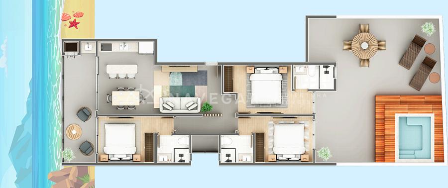 Todas as unidades contam com 3 suítes, projetada para proporcionar qualidade de vida à beira mar.