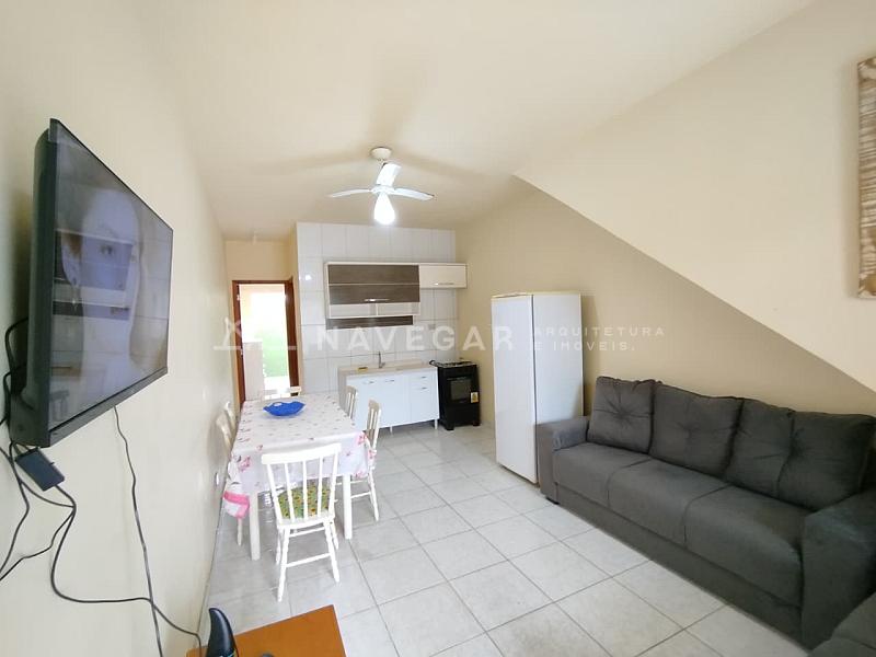 Contém: 01 dormitório, sala de estar e jantar/cozinha em espaço integrado, banheiro social, área de serviço/terracinho nos fundos, varanda frontal com churrasqueira e 01 vaga de garagem.