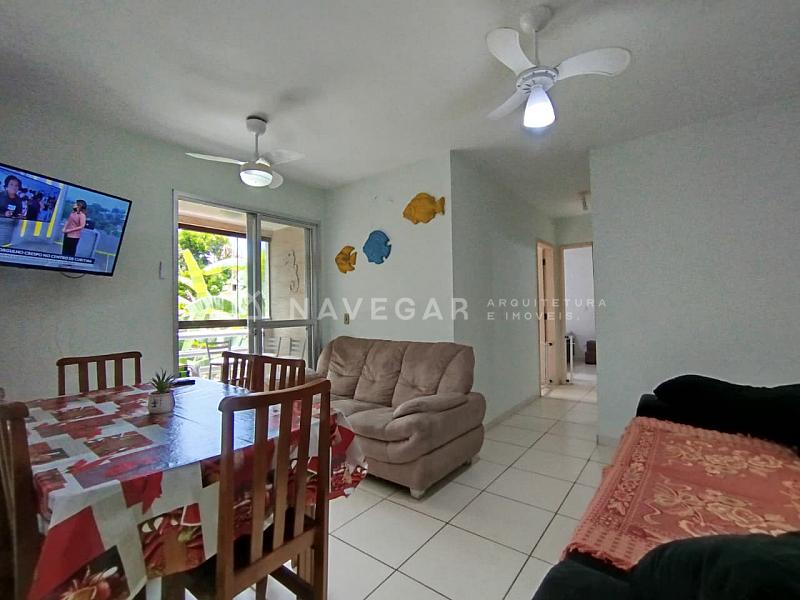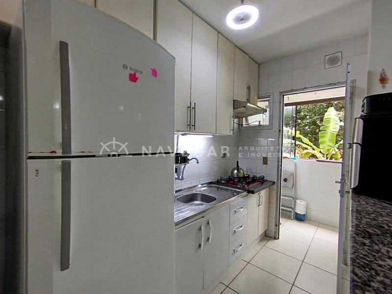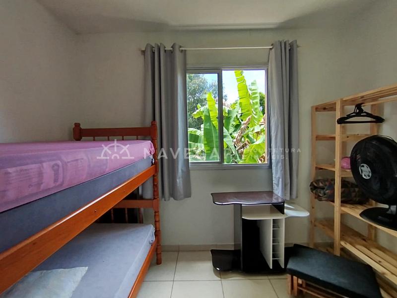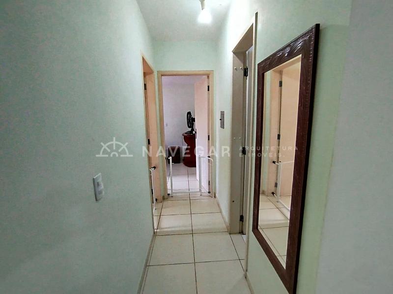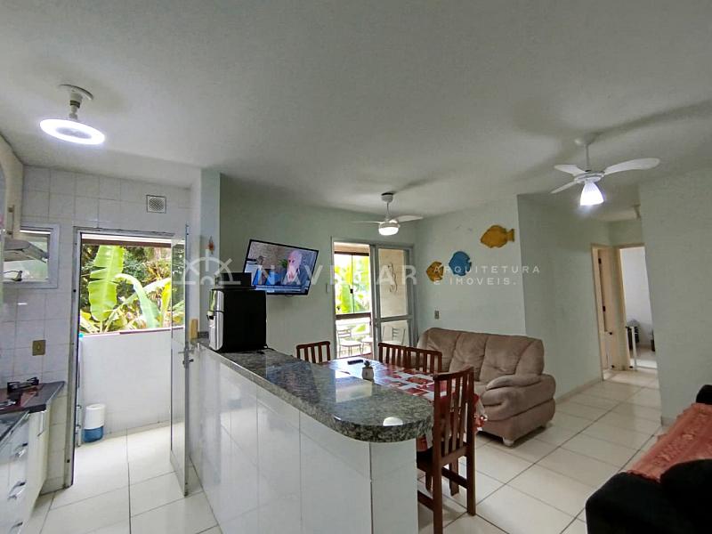 Contém: 02 dormitórios, sendo 01 suíte, banheiro social, sala de estar e jantar e sacada com churrasqueira, cozinha, área de serviço e 01 vaga de garagem compartilhada, para carro pequeno.