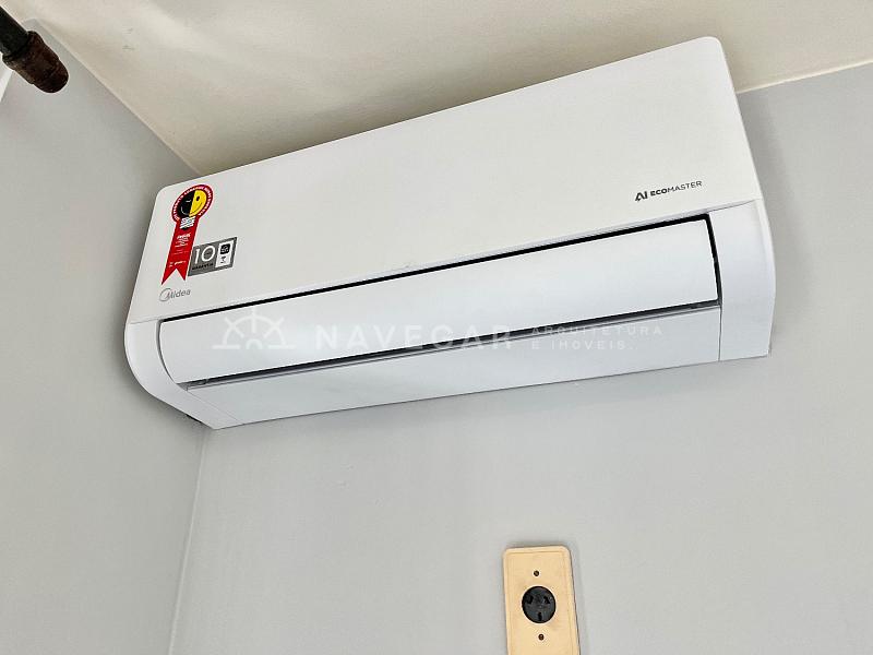 Contém: 02 dormitórios, sacada frontal, sala para dois ambientes com ar condicionado split, cozinha, banheiro social, banheiro na entrada, área de serviço e 01 vaga de garagem.