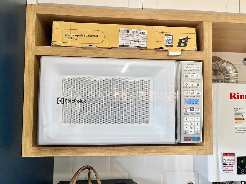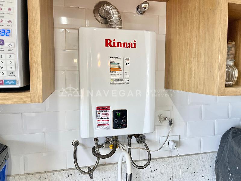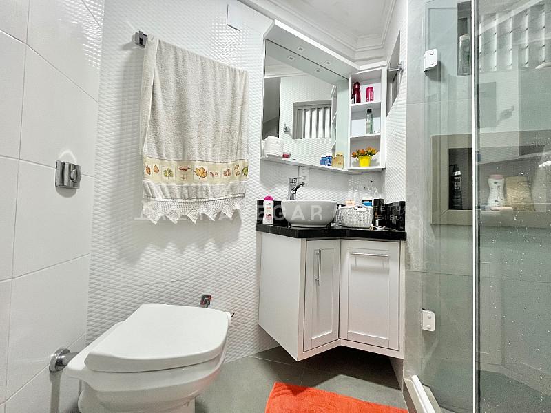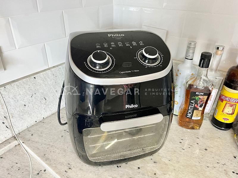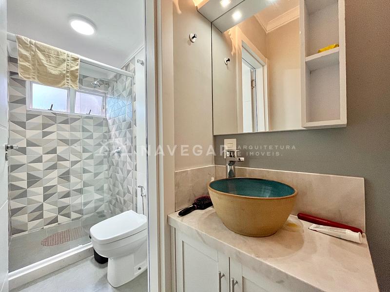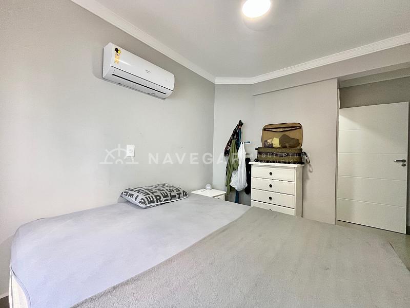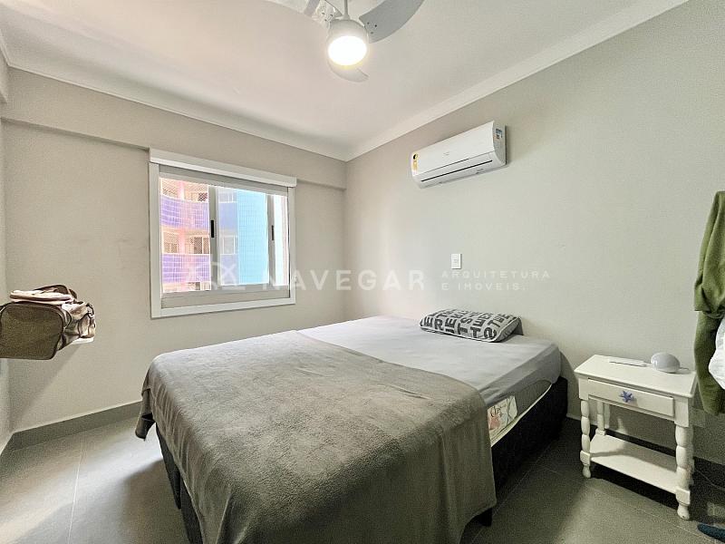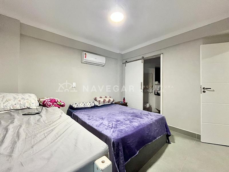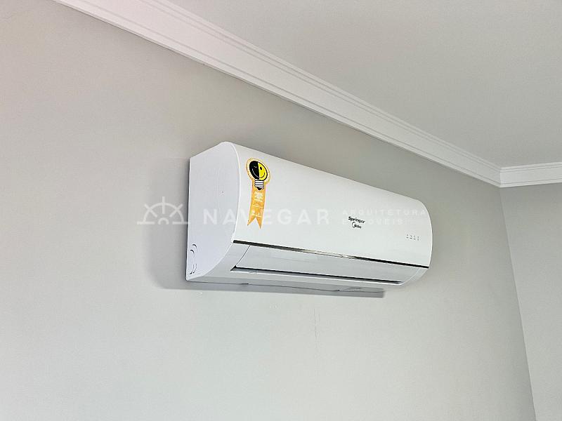 O apartamento conta com duas suítes, ambas com ar condicionado split.