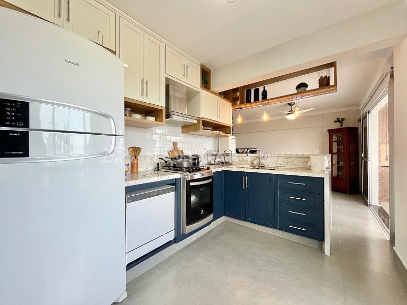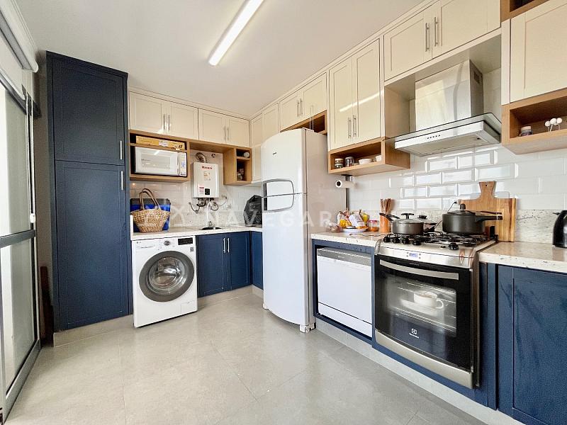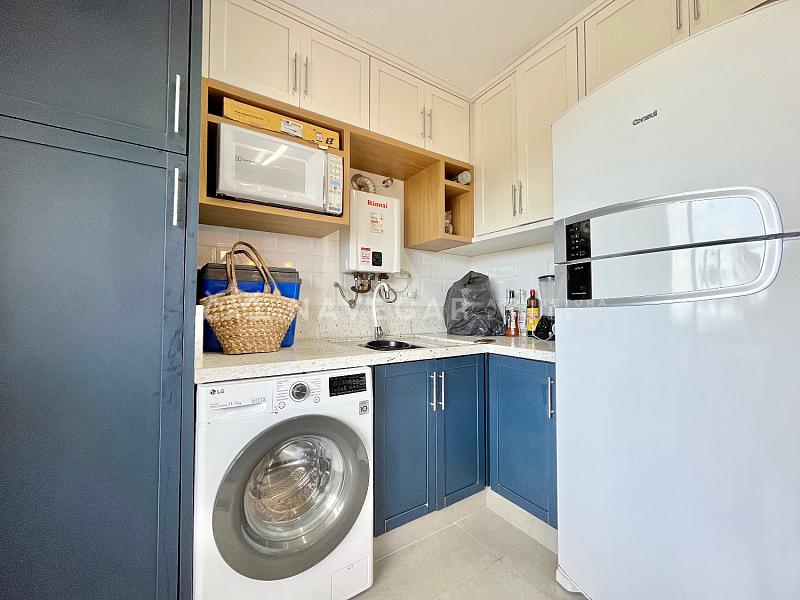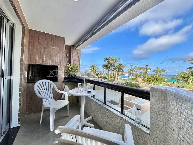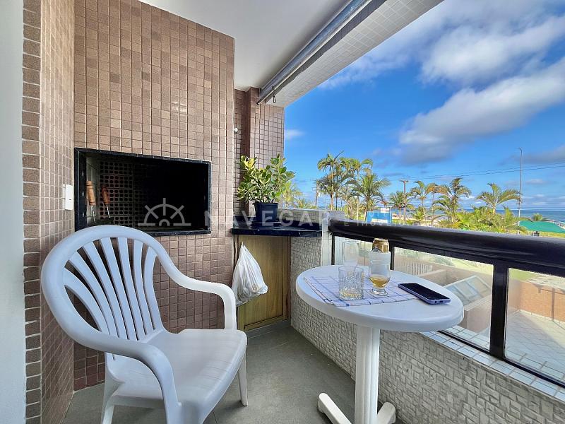Contém: 02 suítes, sala de estar e jantar, sacada com churrasqueira e vista para o mar, cozinha, área de serviço e 02 vagas de garagem.
