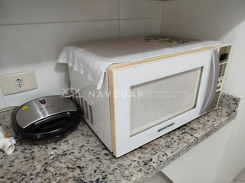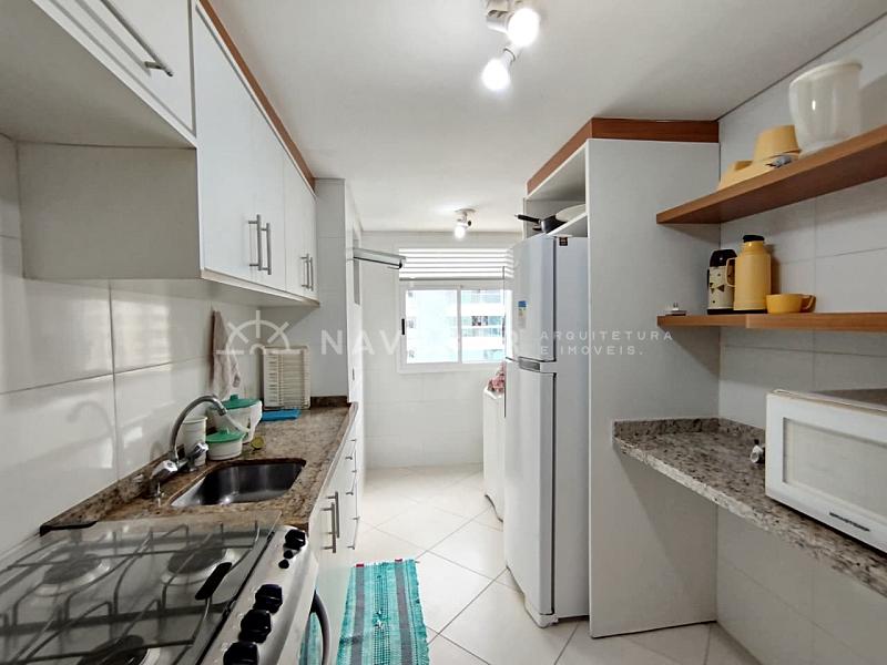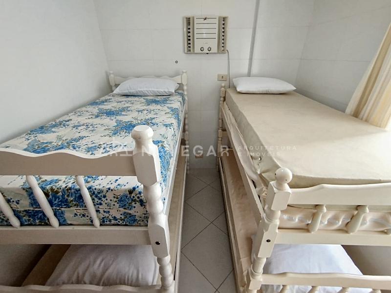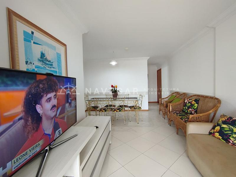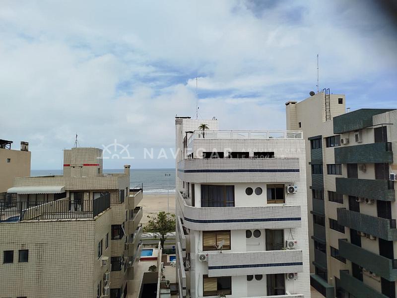 Contém: 03 dormitórios com ar condicionado, banheiro social, sala de estar e jantar, sacada com churrasqueira e vista para o mar, cozinha, área de serviço e 01 vaga de garagem.