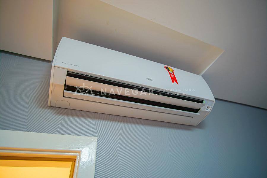 Ar condicionado na sala, nos quartos, na sacada.