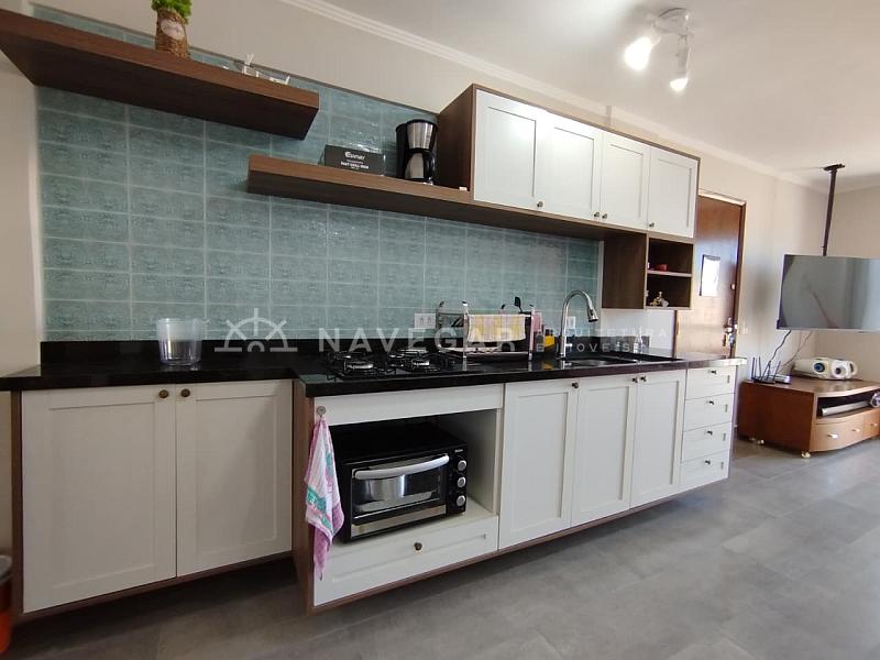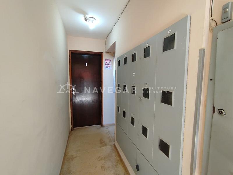 Contém: 01 dormitório, sala de estar, jantar e cozinha em espaço integrado, banheiro social, área de serviço e 01 vaga de garagem numerada (entrada da área das garagens com portão eletrônico pela Rua Waldir Muller.