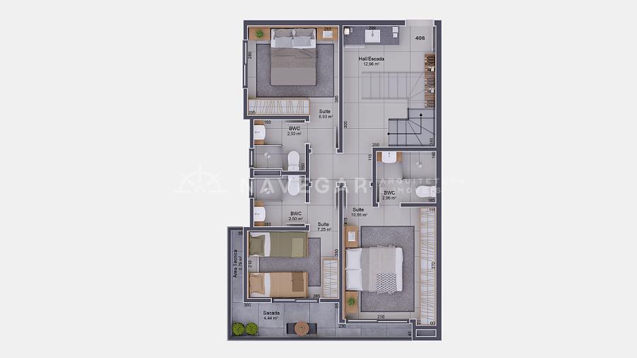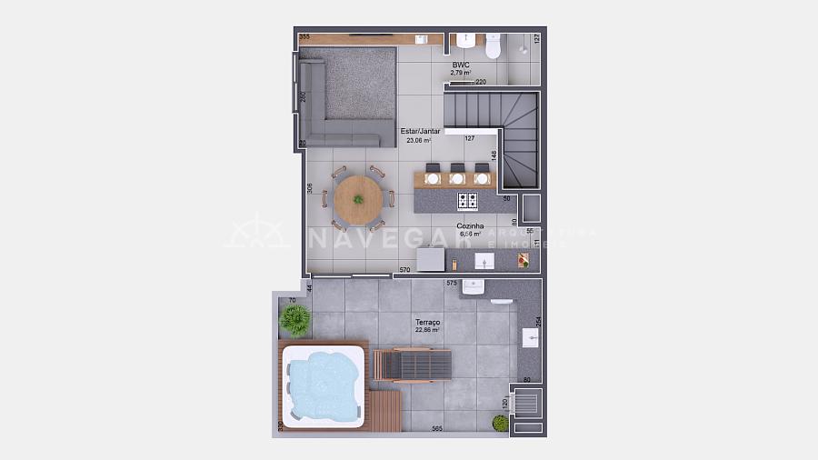 Esta linda cobertura duplex, conta com com 3 Suítes e sacada no piso inferior. No piso superior Cozinha / Jantar/ Estar integrados, banheiro social, terraço com churrasqueira. Possui 2 vagas cobertas de garagem.