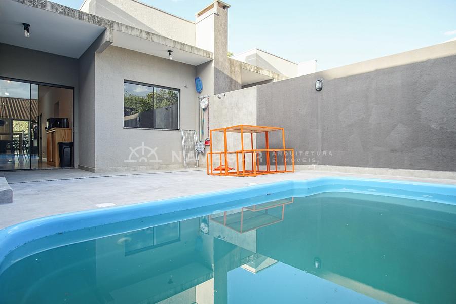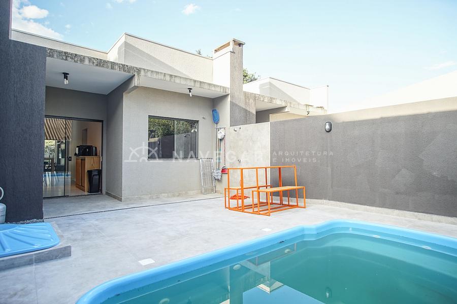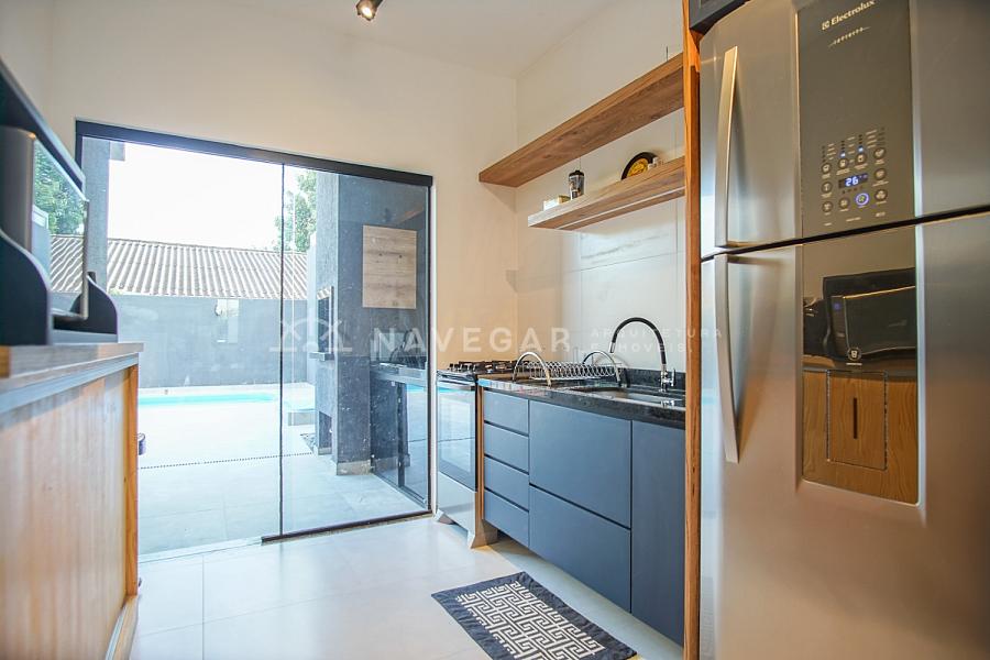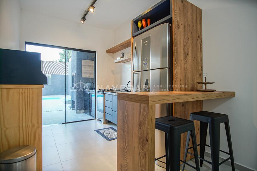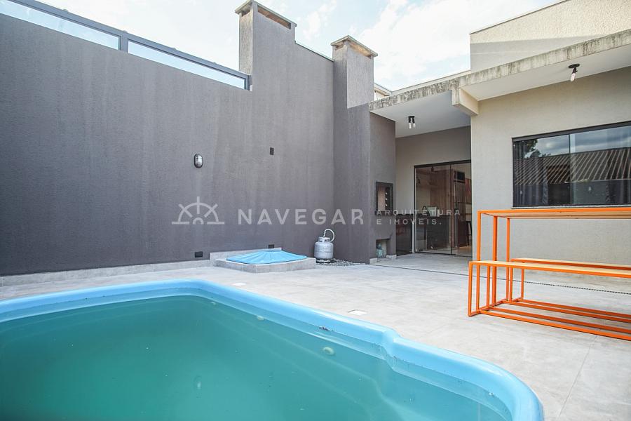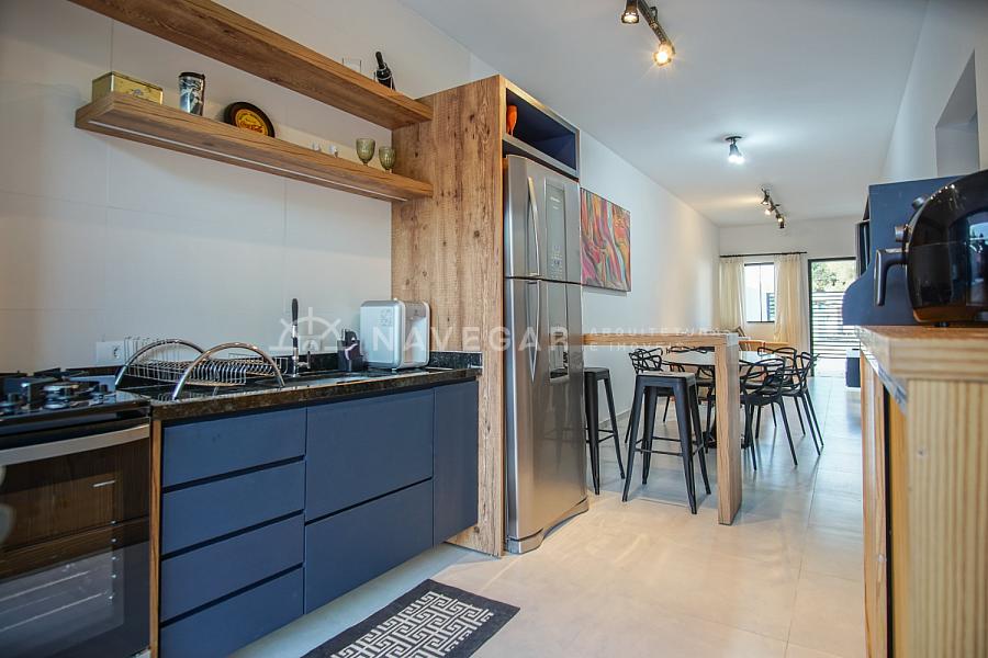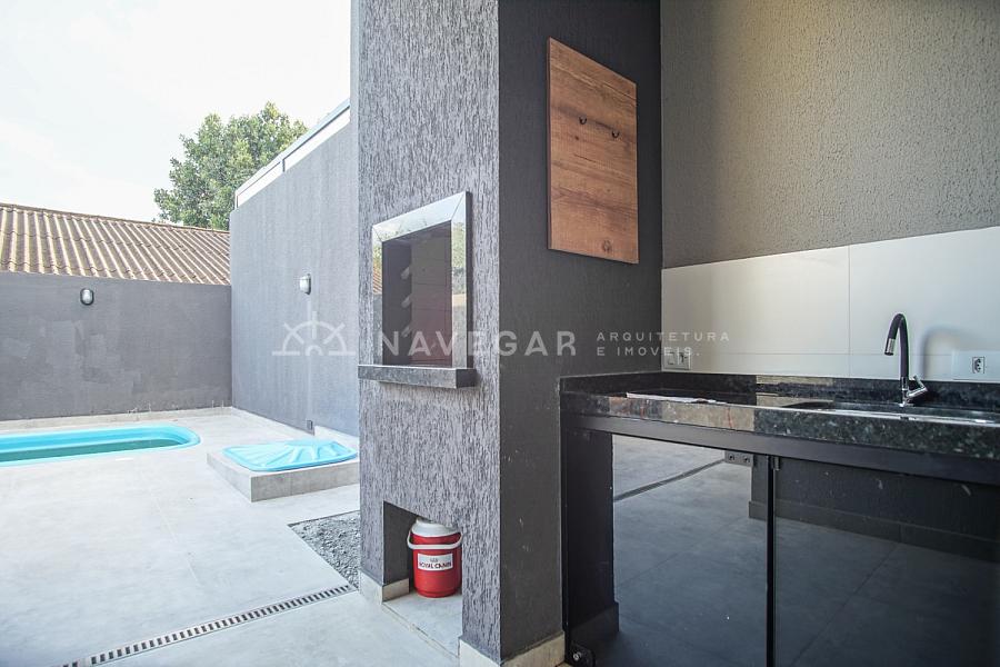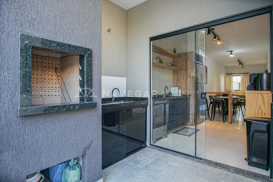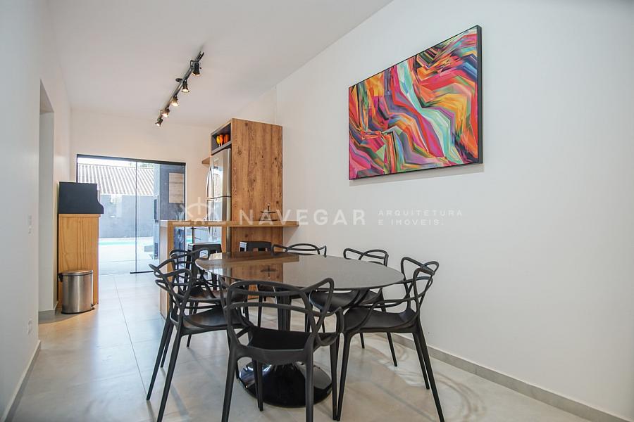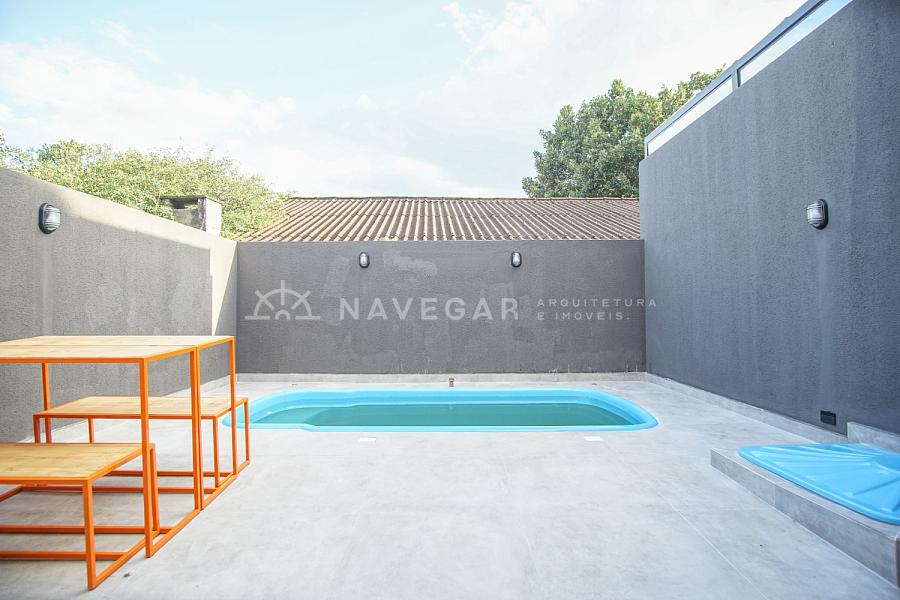 Contém: 03 dormitórios, sendo 01 suíte, sala de estar, jantar e cozinha intregradas, jardim de inverno, banheiro social, área de serviço, churrasqueira e piscina.