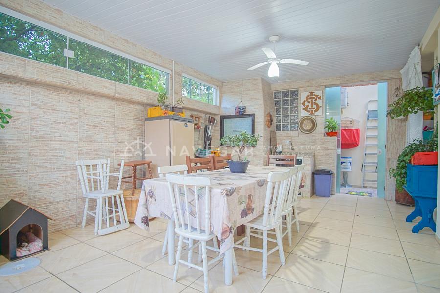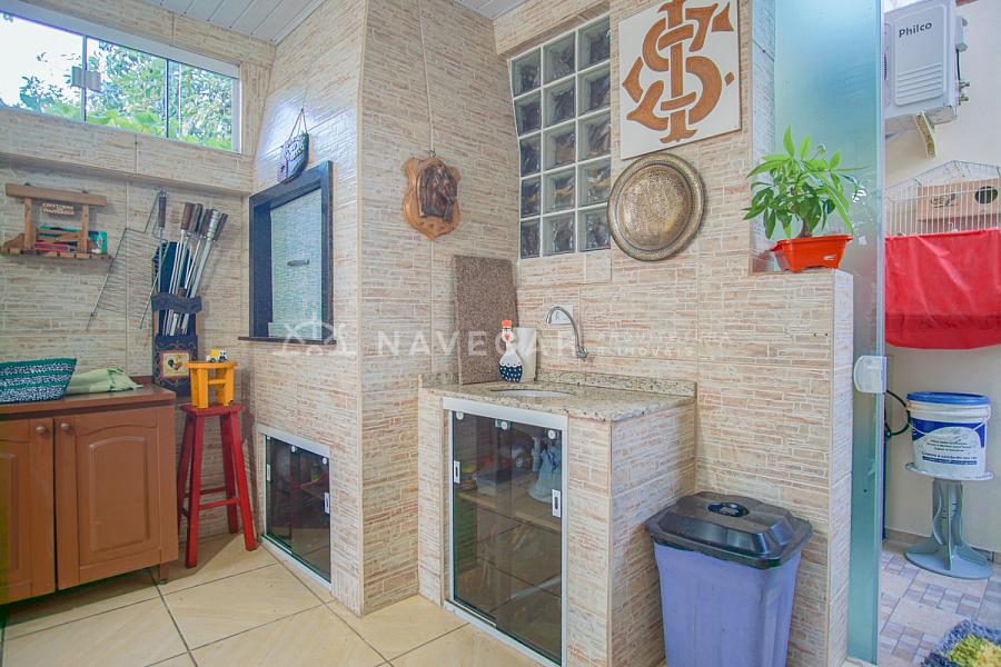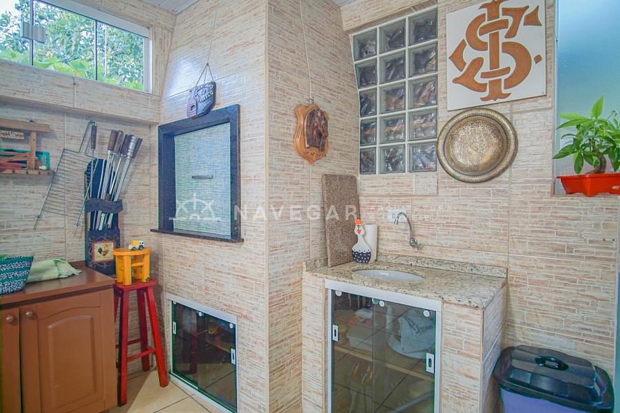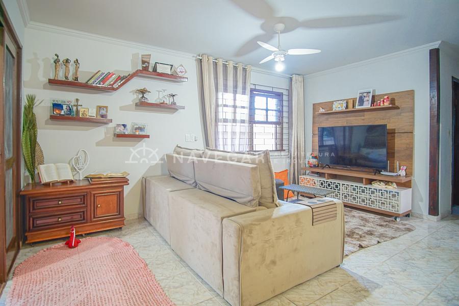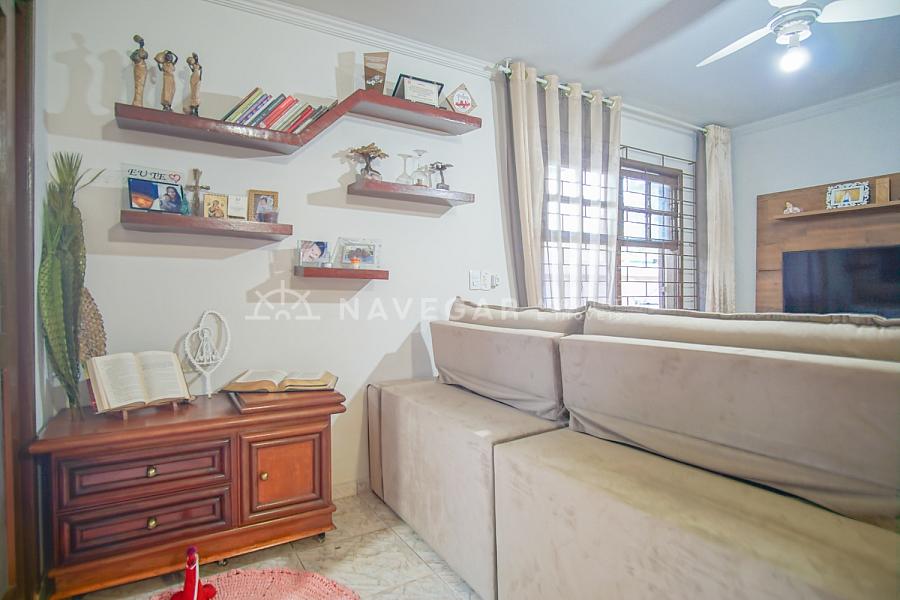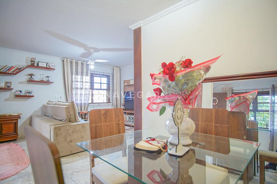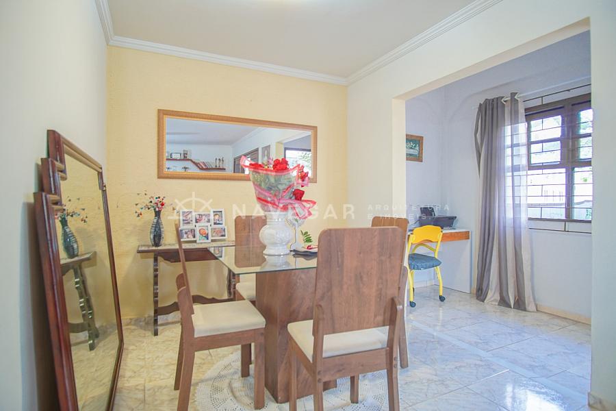 04 dormitórios, sendo 01 suíte, sala de estar e jantar, cozinha com móveis fixos projetados/copa, sala extra de estar, delicioso espaço gourmet com churrasqueira a carvão (excelente para reunir amigos e familiares em confraternizações), área de serviço e garagem para 3 carros. Varanda frontal e jardim.