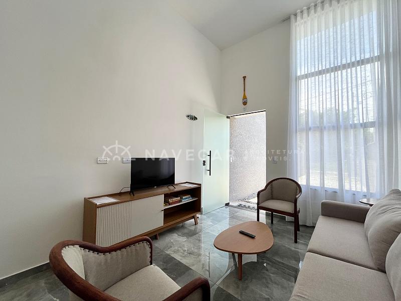 Com pé-direito alto de 4 metros na sala, o ambiente é naturalmente arejado e iluminado, trazendo aquela sensação deliciosa de amplitude e bem-estar.