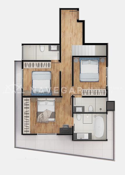 3 quartos (sendo uma suíte master);