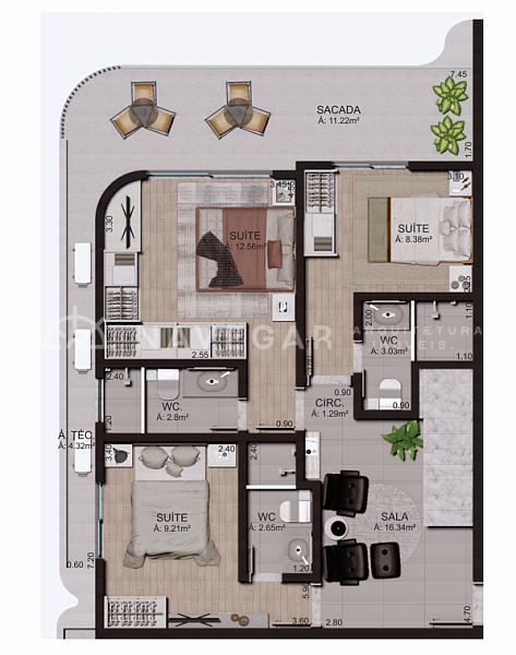 Valores e metragens referentes ao apartamento tipo nº 602, solicite tabela do empreendimento e maiores informações com nossos corretores!