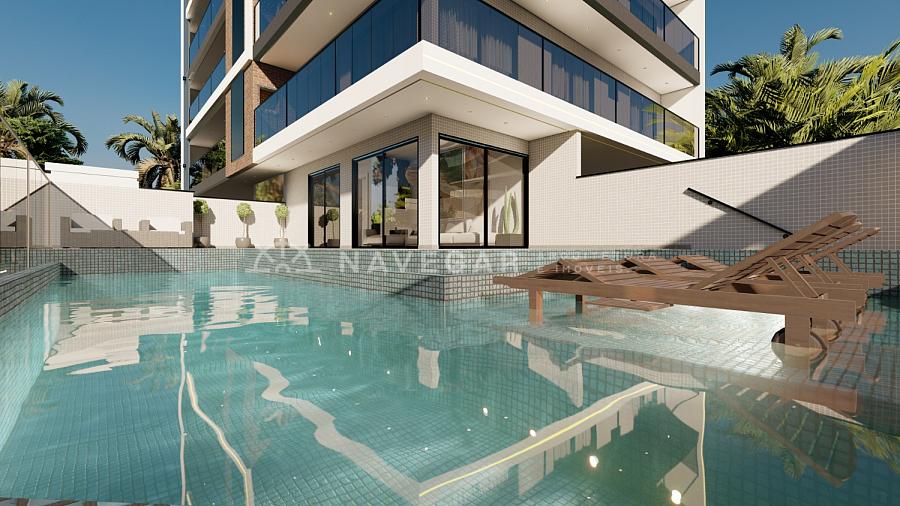 O edifício conta com área de lazer com piscina de frente para o mar e um confortável lounge, para desfrutar de momentos únicos.