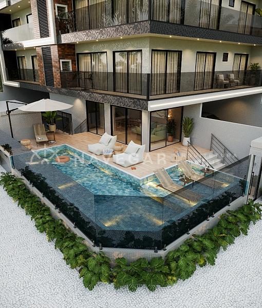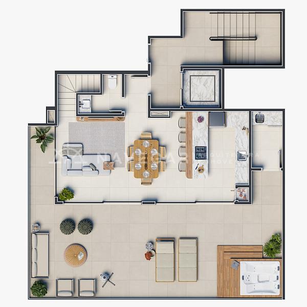 Sua arquitetura conta com traços contemporâneos, materiais nobres e uma composição que valoriza as cores e texturas, que trazem uma identidade única para este empreendimento de frente para o mar.