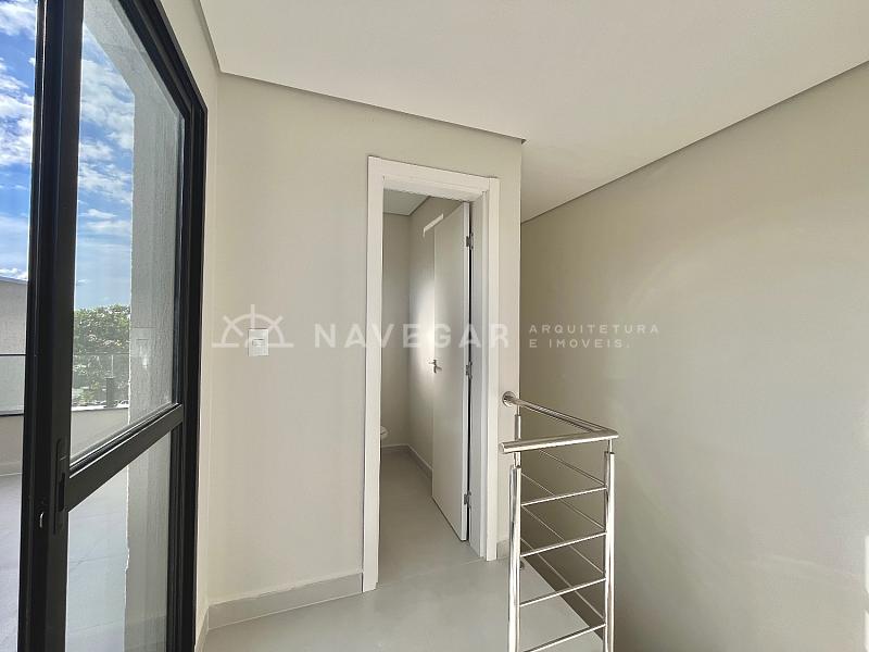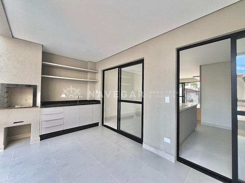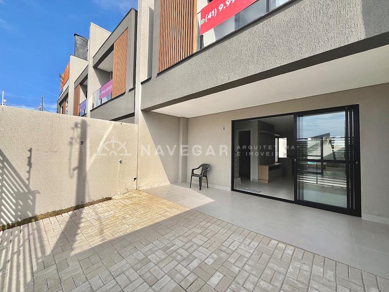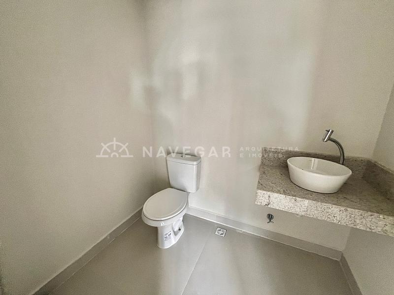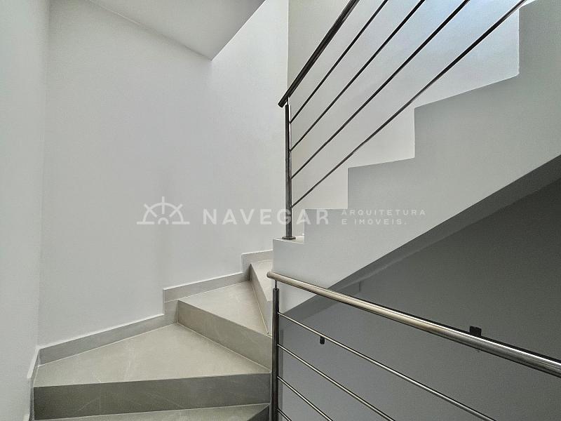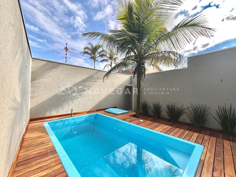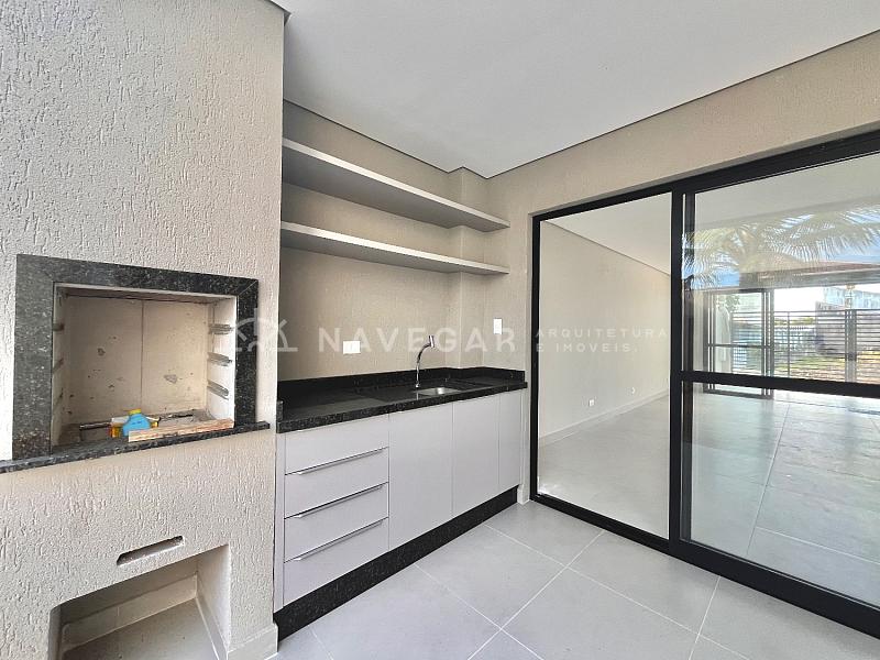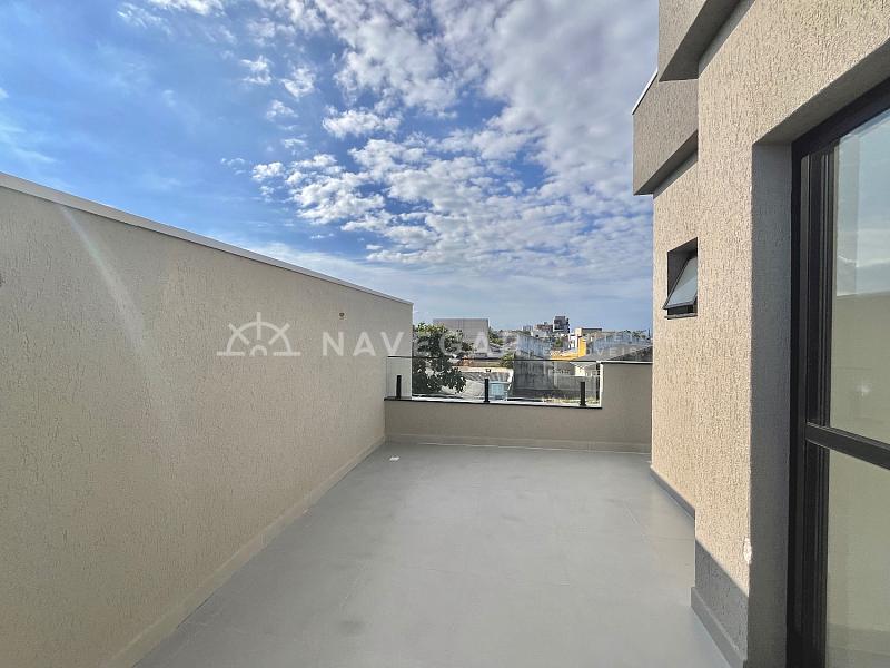 Contém: 03 dormitórios, sendo 01 suíte master com sacada, banheiro social, 02 lavabos, terraço com vista para o mar no piso superior (mais um cômodo que pode ser utilizado para quarto, sala íntima ou home-office) sala de estar, jantar e cozinha em ambientes integrados, churrasqueira a carvão, piscina privativa, lavanderia com armários, depósito e 02 vagas de garagem.