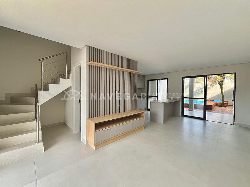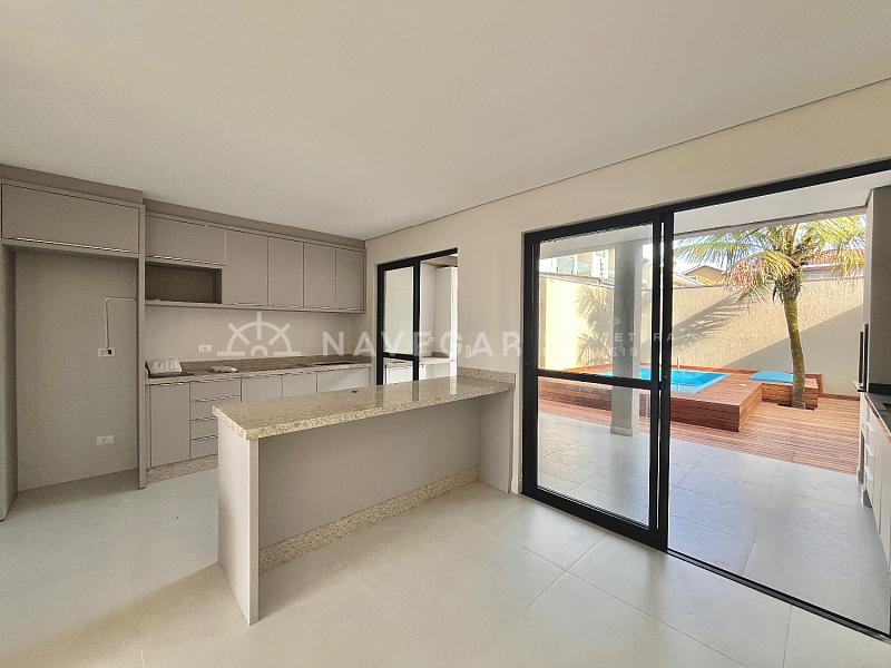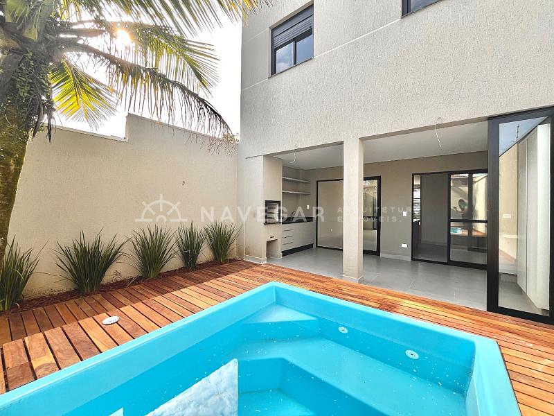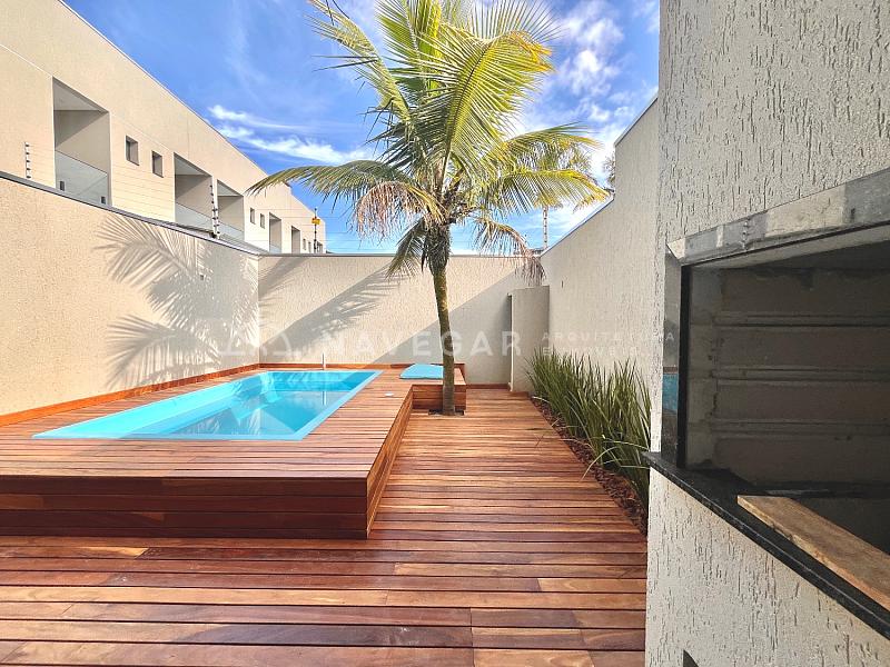 Este sobrado triplex tem amplo espaço e conta com piscina instalada em um lindo deck de madeira. No térreo já tem móveis projetados, com muito espaço de armazenamento na lavanderia, sala, cozinha e também na área da churrasqueira.