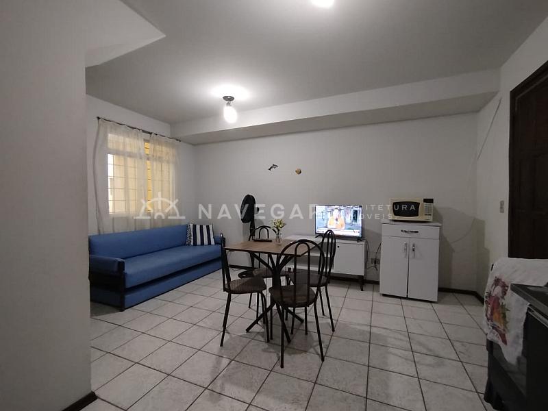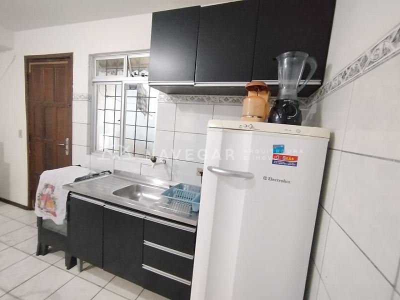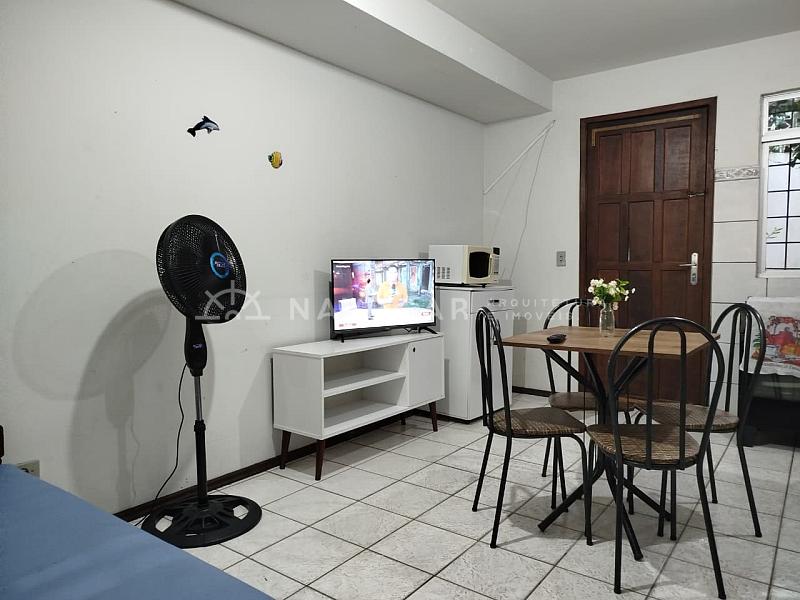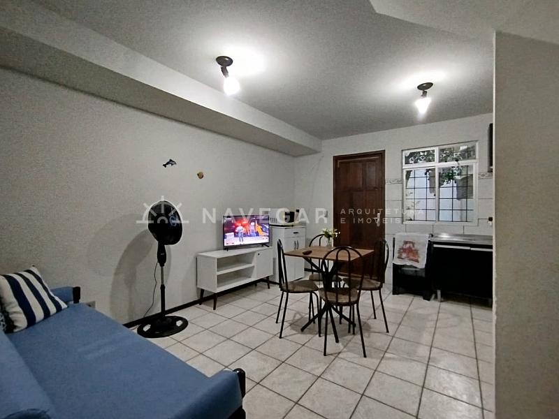 Contém: Quarto de Casal com sacada, quarto de solteiro, banheiro social, sala/copa e cozinha conjugadas, área de serviço, quintalzinho, churrasqueira e 01 vaga de garagem. Acomodações para 07 pessoas.