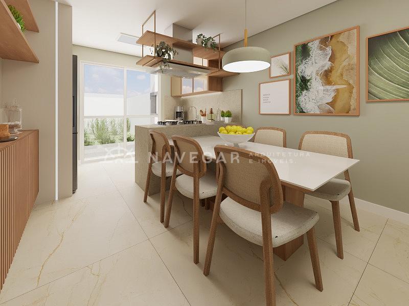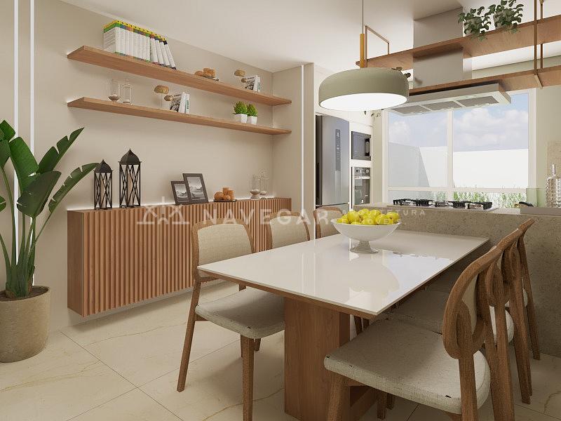 02 suítes, ambas com sacada, sala de estar/jantar e cozinha em conceito aberto, área de serviço, churrasqueira privativa, quintal nos fundos, varanda frontal e 01 vaga de garagem.